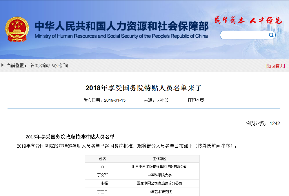 近期,从人力资源和社会保障部获悉,2018年享受国务院政府特殊津贴人员名单已经国务院批准,戴斌院长获享此项津贴。