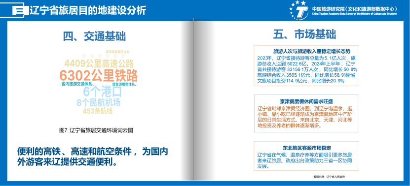 市场客源稳定,旅游综合收入增速。2023年,辽宁省接待游客总量为5.1亿人次,旅游总收入达到5022.6亿。2024年上半年,辽宁省共接待游客33156.1万人次,同比增长50.8%;旅游综合收入3565.1亿元,同比增长58.9%。目标群体的京津冀度假休闲需求旺盛、东北地区客源市场稳定,传统客源吸引要素全面向好开展。