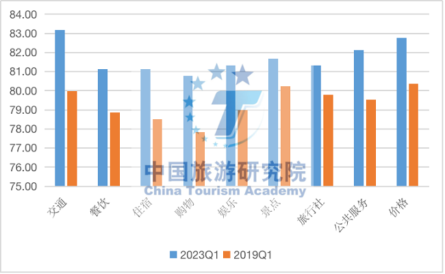 图3:2019、2023年一季度出境游客满意度细分指标对比