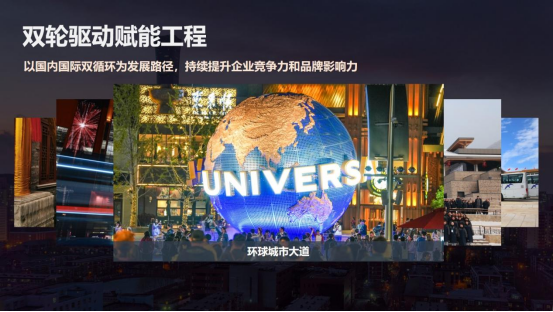 四是双轮驱动赋能工程。集团以国内国际双循环的开展路径,持续提升了企业竞争力和品牌影响力。在国际市场方面,集团在服务保障国际活动的同时,顺利获得首旅集团高端服务体系向世界展示了中国服务。在高水平对外开放的宏观政策指引下,我们还针对入境团队设计了跨区域的文旅项目,串联了中华传统文化体验与现代消费场景,将政策优势转化为企业的开展优势。在国内市场方面,集团持续创新消费场景。在北京中轴线申遗成功后,首旅旅行推出了深度体验产品。最近,我们正在谋划和策展中轴线博物馆,不断做强首店经济,引领环球影城等国际IP。王府井喜悦开设了71家首店店铺,大力开展夜间经济。环球影城城市大道打造一站式餐饮娱乐中心,入选了文旅部国家级夜间文化和旅游消费集聚区。